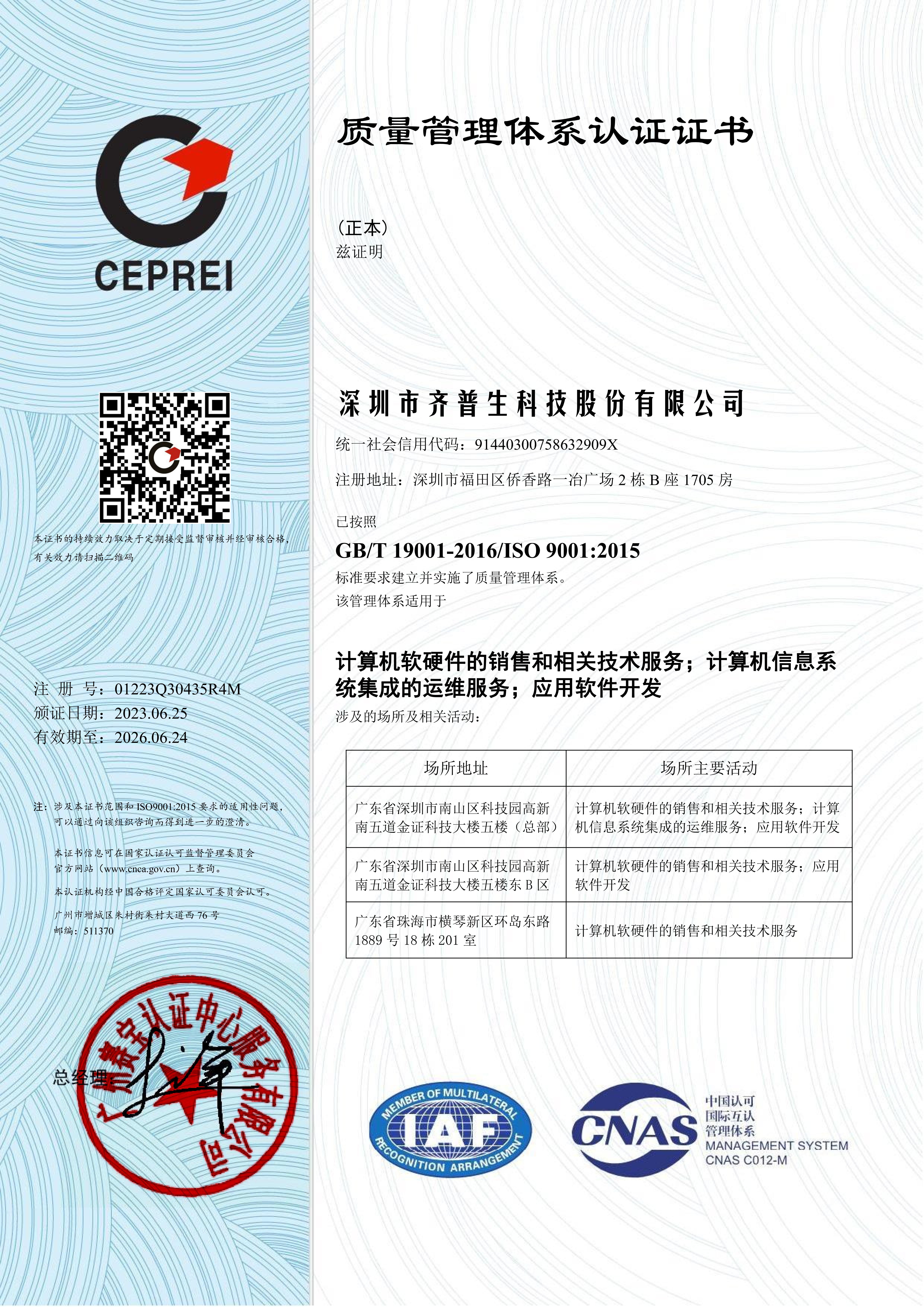 ISO9001證書(股份)